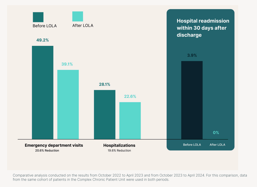 After implementing LOLA, Tucuvi’s Clinical Voice AI Agent, the hospital achieved a 19.6% reduction in hospitalizations and a 20.6% decrease in emergency visits, completely eliminated 30-day readmissions, and reached 90% patient adherence to AI follow-up calls. Additionally, the clinical team reported an average satisfaction score of 9.3/10.