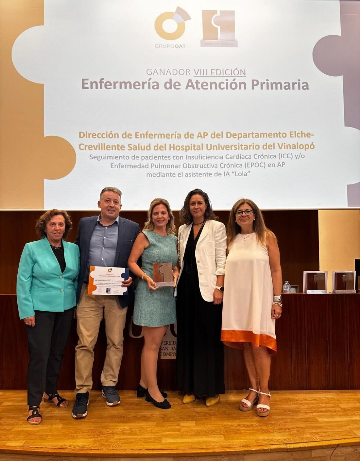 La Dirección de Enfermería de Atención Primaria de la Unidad de Elche-Crevillente del Hospital Universitario del Vinalopó ha sido galardonada con el premio al mejor proyecto de adherencia de la enfermería de atención primaria.